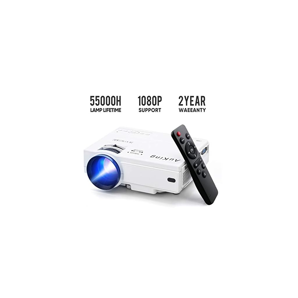 The AuKing mini-projector produces 32~170 inches projection display size on a 1m-5m projection distance. The AuKing mini-projector has built-in speakers that offer excellent loud sound quality. You can also connect the projector to the external speakers to meet your higher and better quality sound needs.